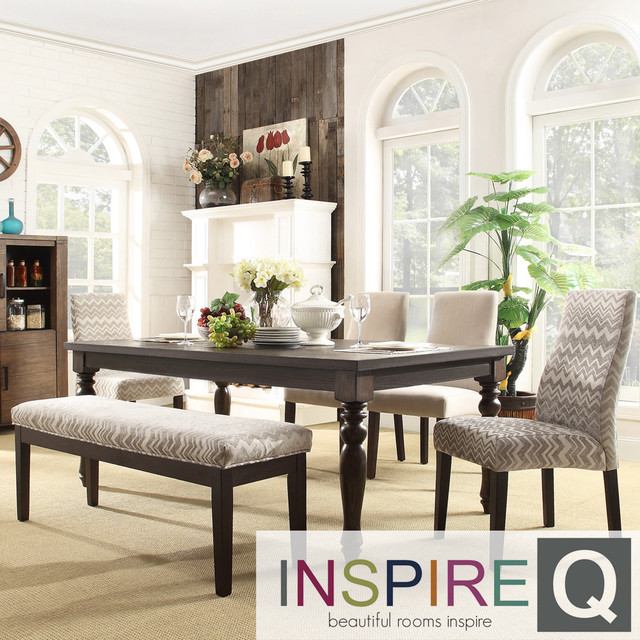 A rectangle dining table with turned legs brings a simple elegance to any dining room. The carved legs and elegant veneer table top bring a classic style in a more laid back rustic finish. ... Fetch Doc