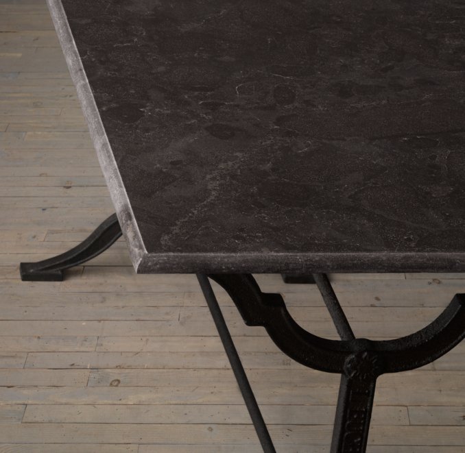 Restoration Hardware's Bluestone & Cast Iron Pedestal Rectangular Dining Table:Originally designed in early 20th century France to support a commercial sewing machine, our interpretation for the dining room pairs a smooth bluestone top with a sturdy cast iron base. ... Access Doc