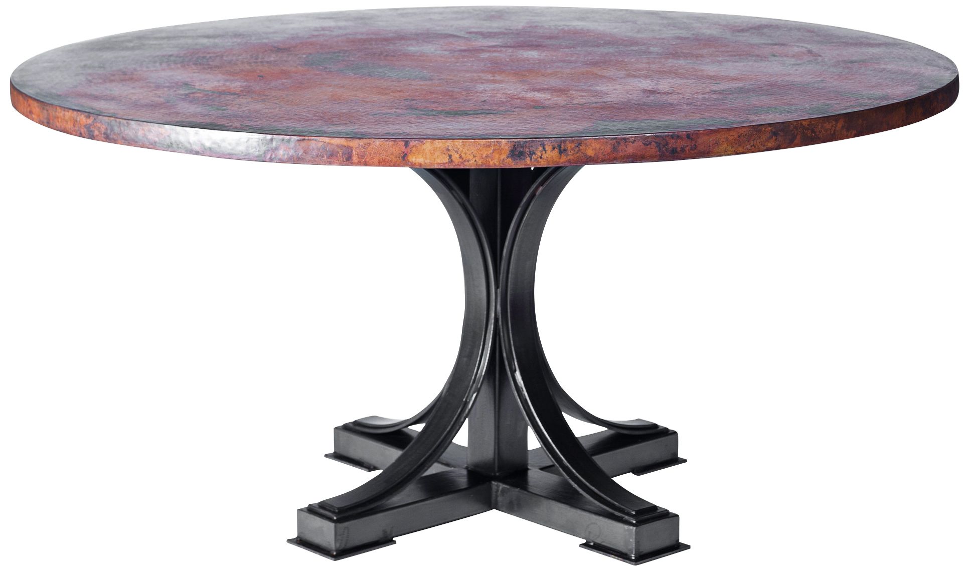 Genuine hand hammered copper top Recycled copper Round iron hand forged steel base. Available as 60" Round or 48" Round table x 29" high Sku 8132185 60" Round Copper Table Top ... View Doc